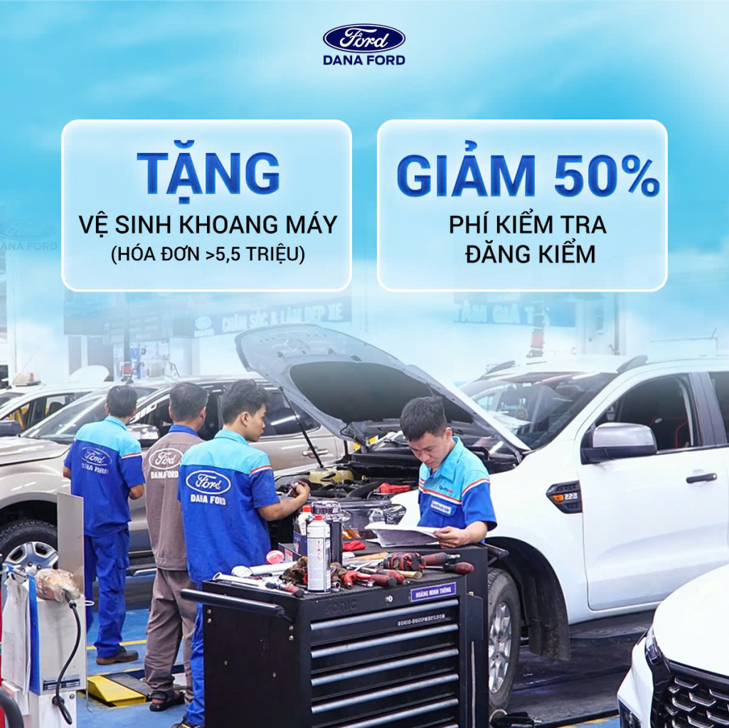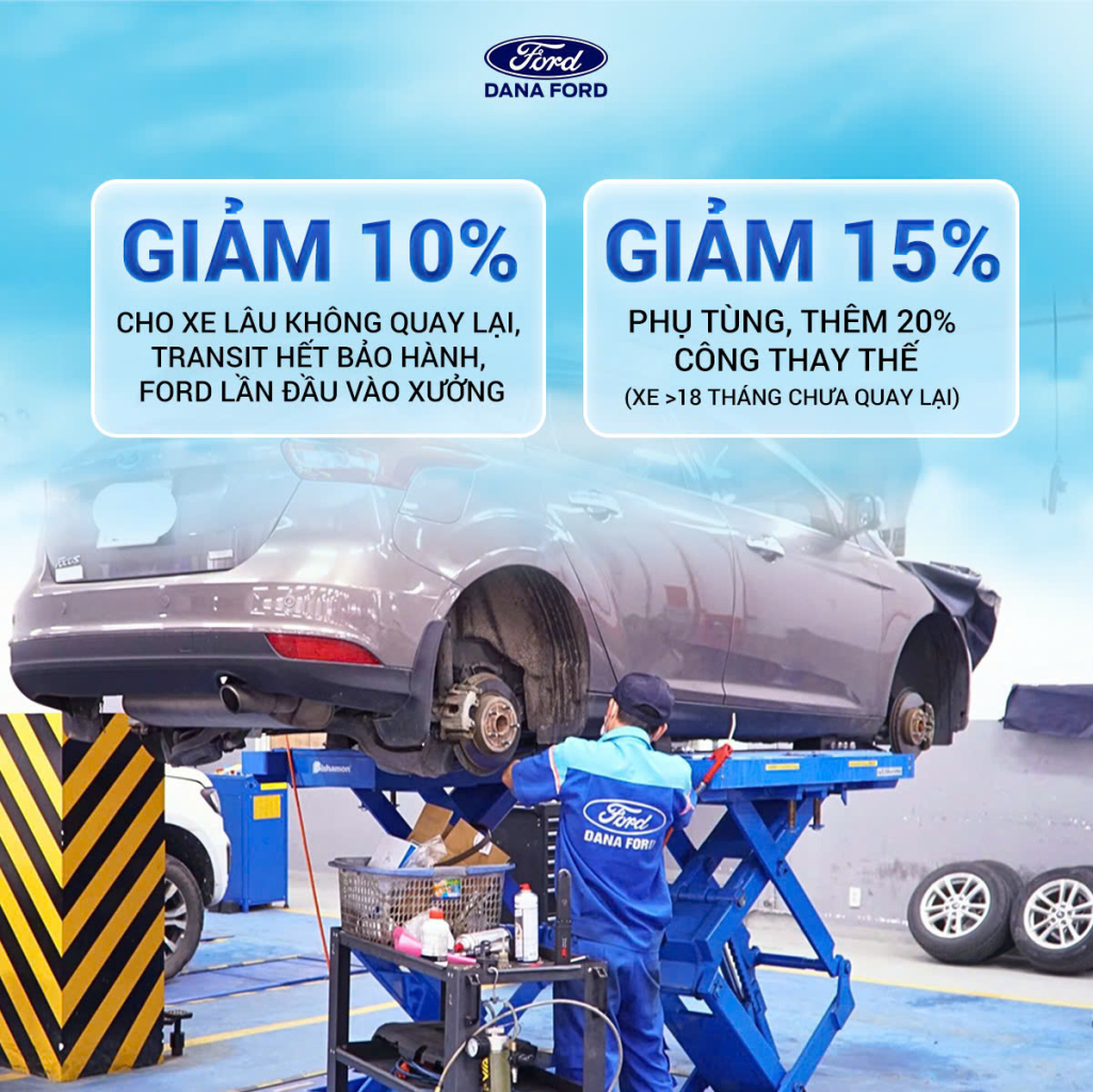 - Xe Ford lần đầu vào xưởng sửa chữa & đồng sơn (trừ bảo dưỡng 1.000 km đầu tiên) và chỉ giảm giá nhân công đồng và sơn cho xe không tham gia Bảo hiểm vật chất