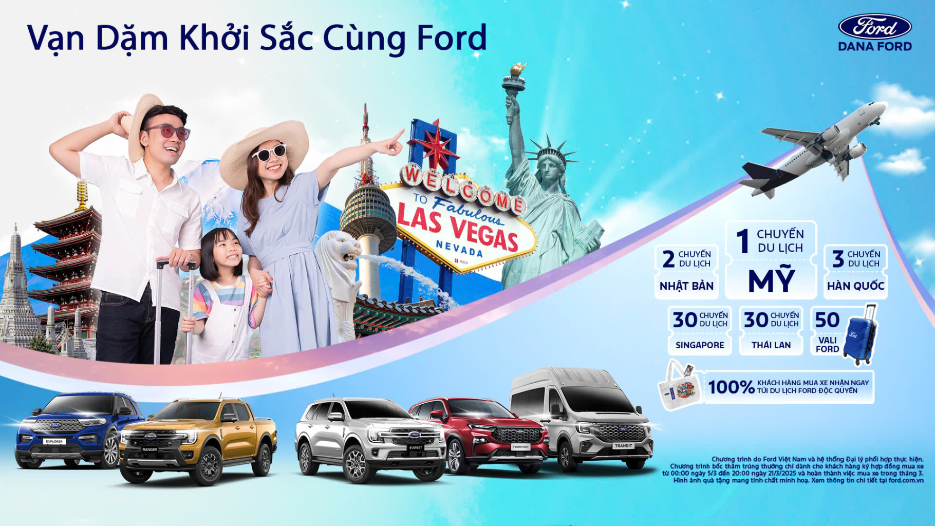 Bạn đã sẵn sàng cho một hành trình bứt phá trong năm 2025? Ford Việt Nam mang đến cơ hội không thể hấp dẫn hơn với chương trình "Vạn Dặm Khởi Sắc Cùng Ford", nơi khách hàng không chỉ sở hữu một chiếc xe mạnh mẽ mà còn có thể trúng những chuyến du lịch trọn gói dành cho 2 người đến các điểm đến mơ ước trên thế giới!